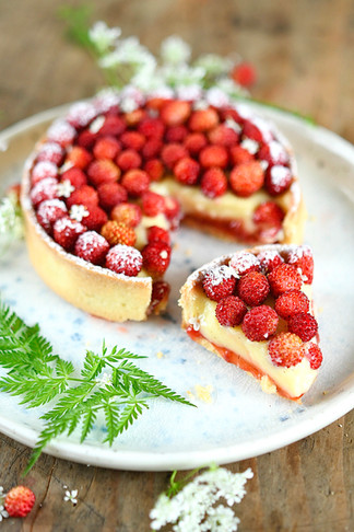 Une bonne pâte sablée et un crémeux légèrement citronné vont sublimer ces petites fraises déjà très parfumées. Alors observez bien votre jardin, il y en a certainement qui se cachent dans un coin.